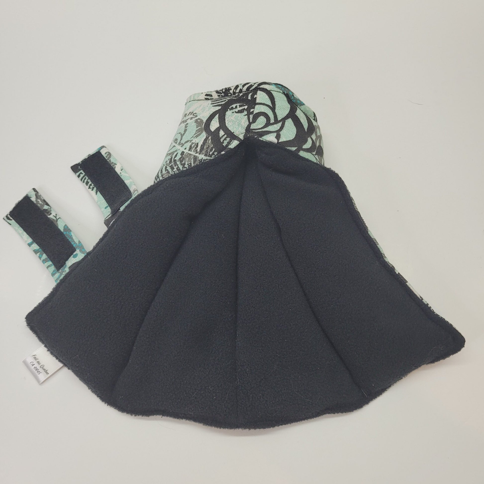 Tissu extérieur 100% coton, tissu intérieur polar 100% polyester, rempli de graines de lin biologiques du Québec