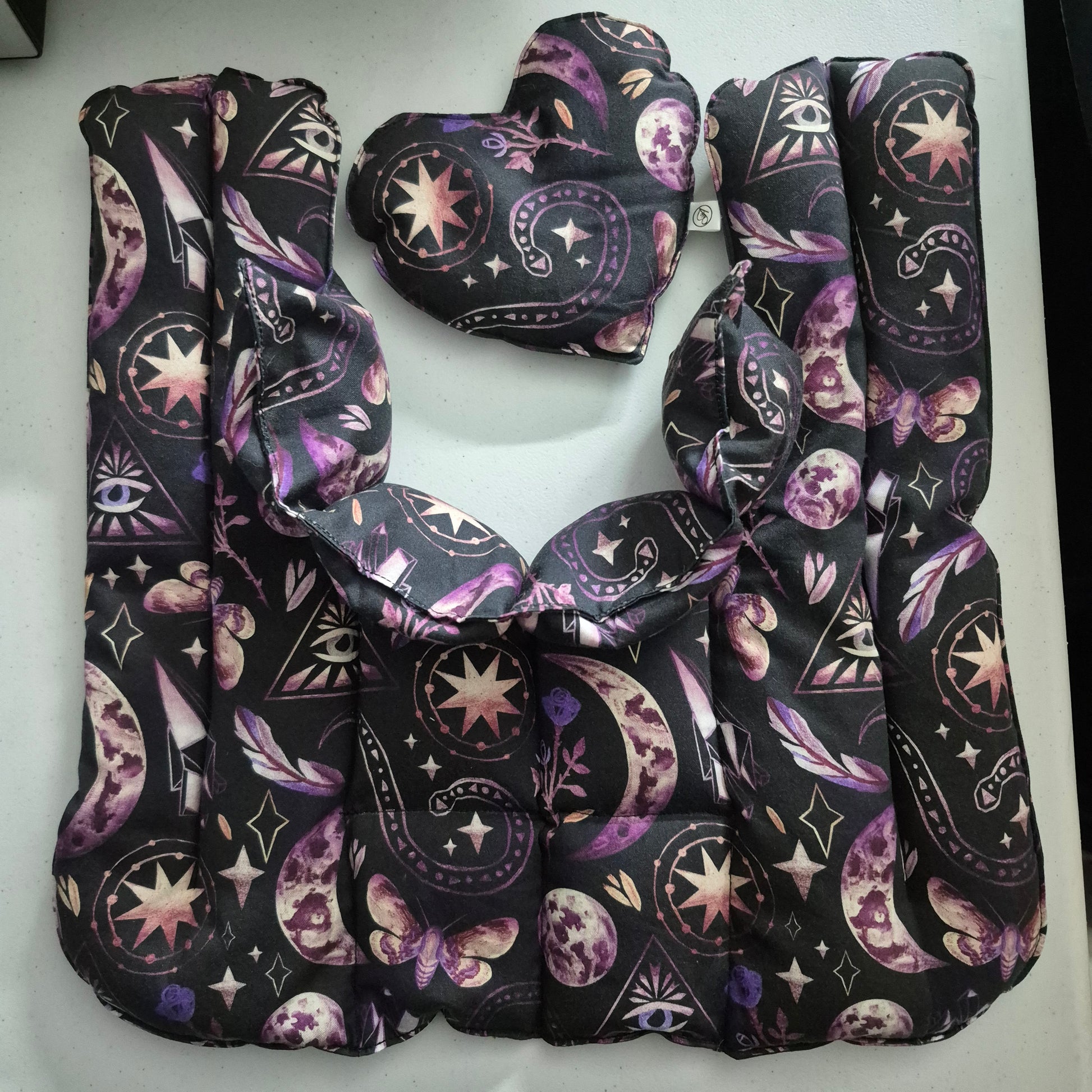 USAGE CHAUD: apaise et soulage les douleurs cervicales, les épaules, le ventre, les poignets et toutes autres articulations et aussi les douleurs liées aux règles. elle décontracte et réchauffe les muscles. Favorise la production de lait pendant l'allaitement et soulage les coliques de bébé.