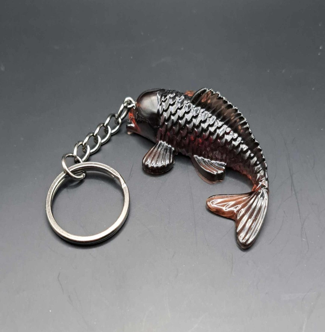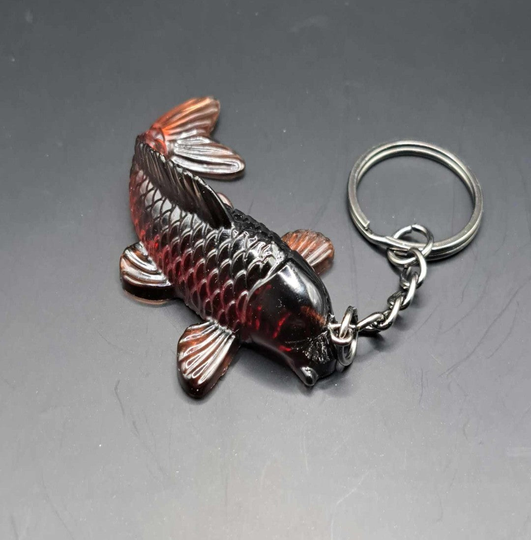 Porte-clés petit poisson koï fait en résine, ce petit poisson emblématique représente la fécondité mais il est aussi signe d'abondance et de sagesse.